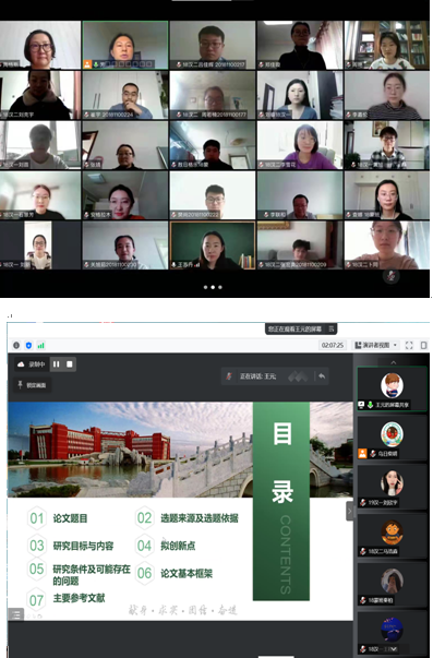 为了保证线上开题答辩的顺利进行,每个答辩小组在答辩开始之前都单独进行了设备调试和演示。在答辩过程中,员工们采用屏幕分享PPT的方式,从毕业论文选题背景、研究意义、研究内容、研究思路、研究方法、论文框架以及进度安排等方面进行了认真陈述。答辩小组老师根据每一位员工的开题汇报,重点指出选题、研究内容和方法中存在的主要问题并提出了修改意见或建议,同时对毕业论文的格式、结构提出了规范化要求。