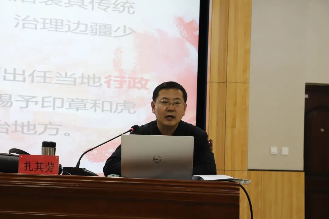 讲座中,扎其劳老师为同学们详细介绍了红船精神、中国共产党解决民族问题的早期探索、中国共产党民族区域自治理论的提出、民族区域自治政策理论在内蒙古的成功实践以及坚持好落实好民族区域自治制度的基本经验。通过扎老师生动的讲解,同学们对红船精神和内蒙古民族发展有了更加深刻的理解。