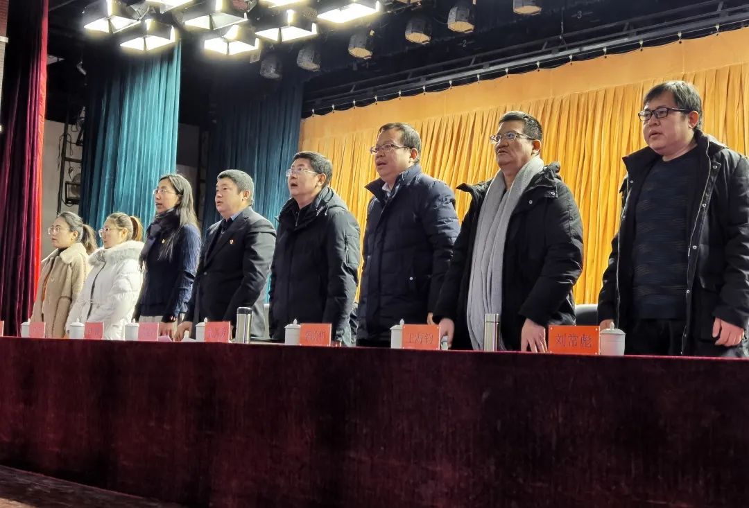 大会第一项:全体人员起立,奏唱国歌。