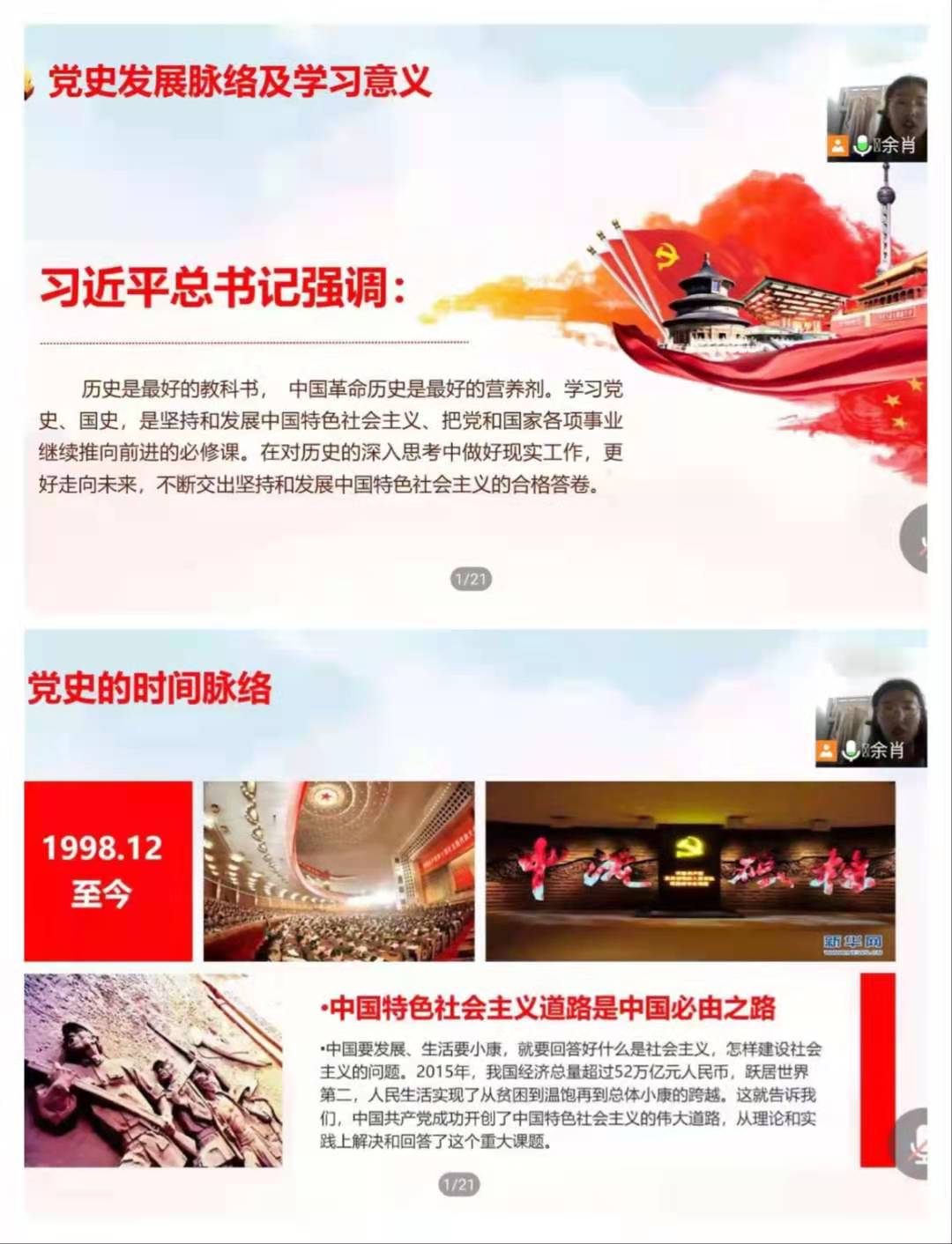 18级信息一班采取线上模式,以云端会议、知识问答、搜索公众号相关文章等形式,了解中国共产党100年的光辉历程。