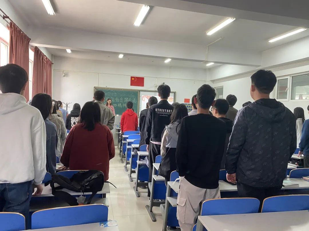 在团支书余肖同学的带领下,同学们详细了解了五四运动的发展历程与五四精神等内容。