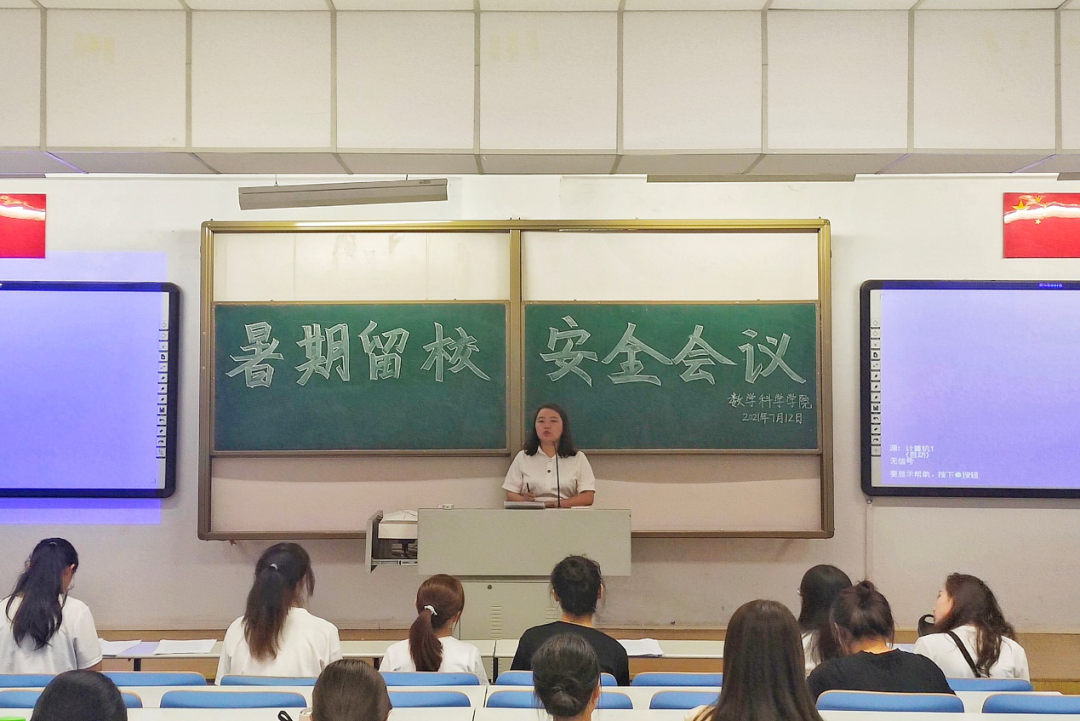 为保障2021年暑期留校住宿员工在校期间正常的学习、生活及其人身财产安全,sunbet申搏根据学校安全工作要求,安排值班老师对员工进行管理,及时妥善处置员工可能遇到的问题或突发状况。值班老师按照值班表严格履行值班职责,如遇突发状况或紧急事故将第一时间向带班领导汇报情况,并及时赶往事发现场进行妥善处置。并于7月12日,sunbet申搏辅导员刘沙沙老师在行知楼118召开2021年暑期留校安全会议,参会人员为本次暑期全体留校人员。刘老师从有关员工人身、财产安全等安全事项方面做出强调。