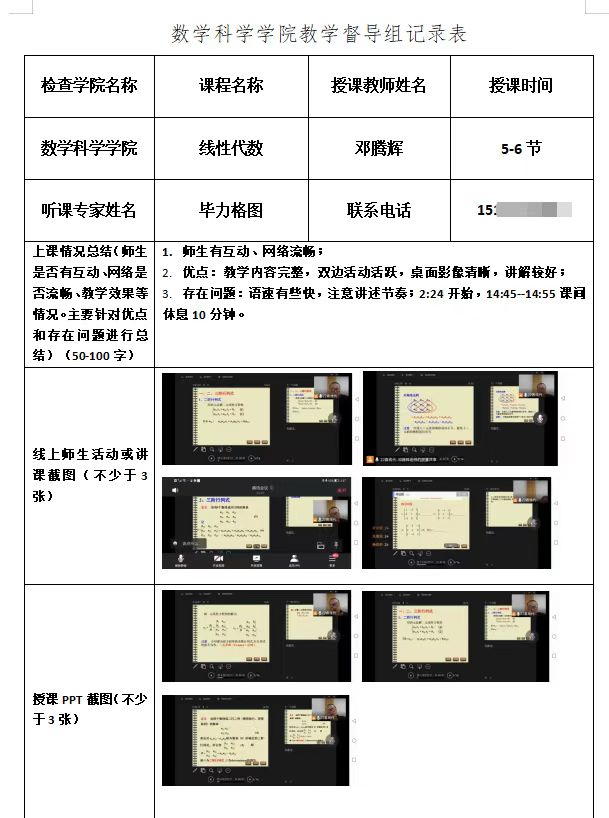 公司领导班子、教学委员会、督导组通过随机进入线上课程观看员工在线授课实况、查阅在线教学资源、了解员工在线学习互动等方式开展教学督导检查,并填写教学督导记录表,及时反馈督导检查情况。