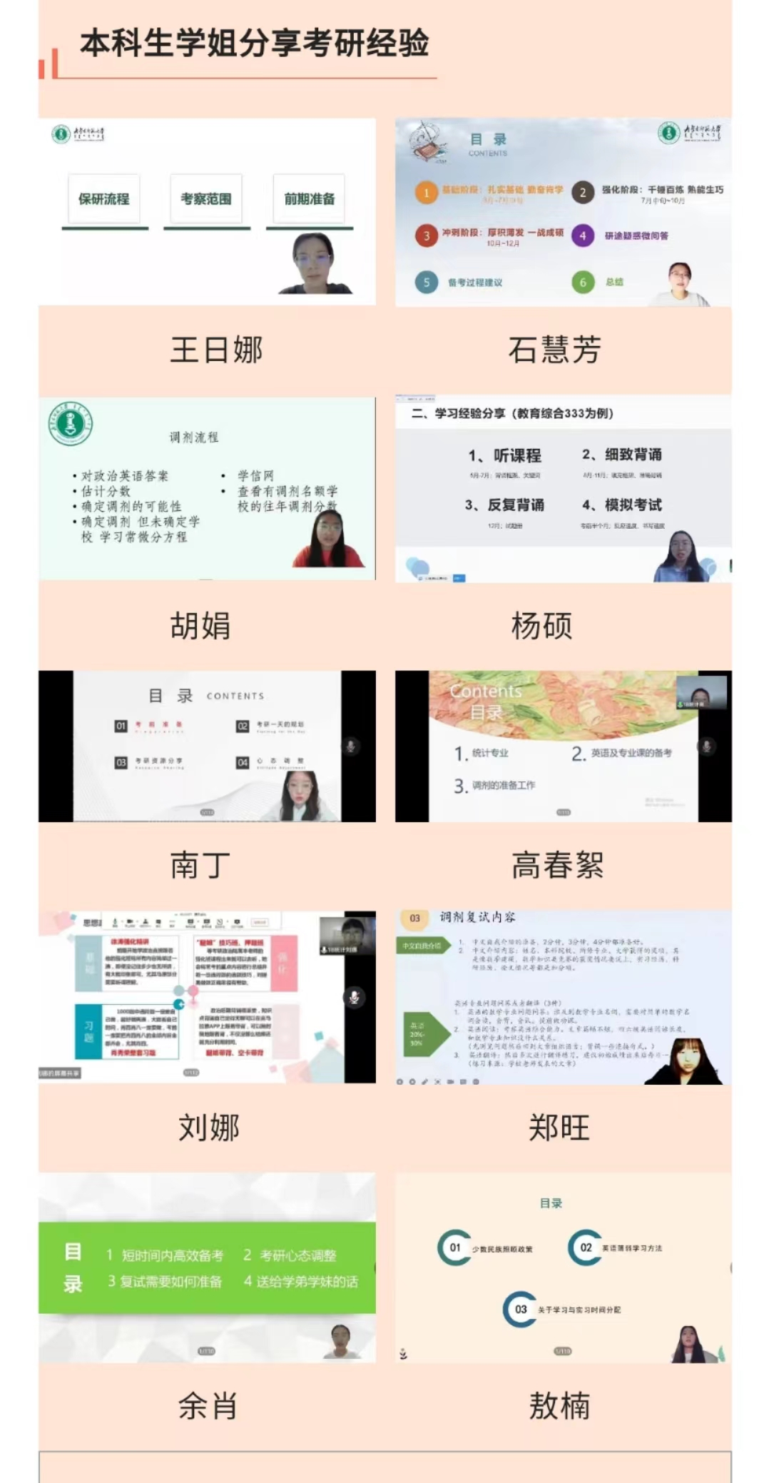 为树立优良学风,深入了解考研全过程,及时解决考研中遇到的问题,帮助同学们在明年的考试中有更好的发挥。sunbet申搏于2022年5月19日举办线上考研经验交流会,此次会议一共邀请到13位申博和考研成功的优秀学子向同学们分享经验。