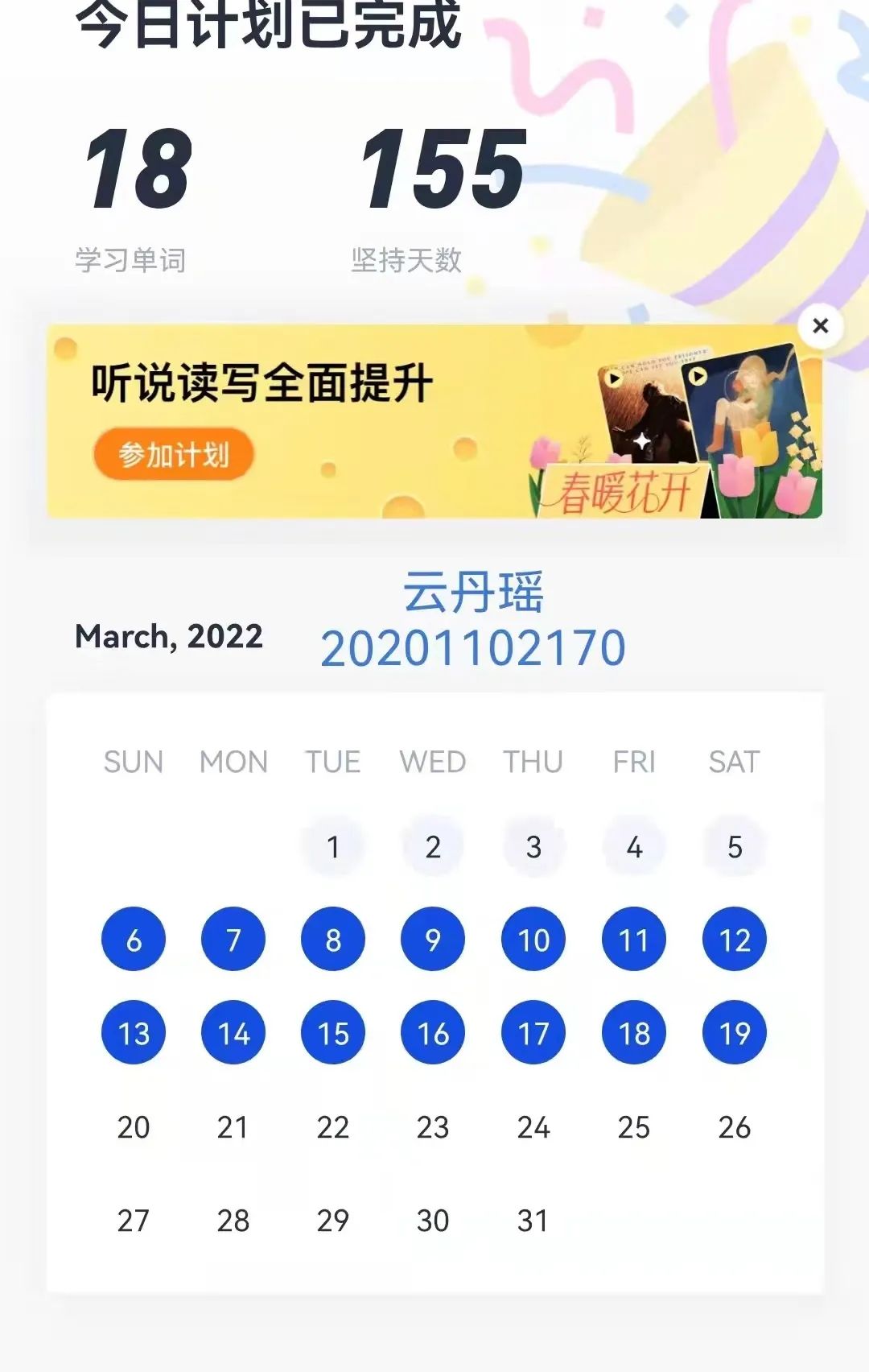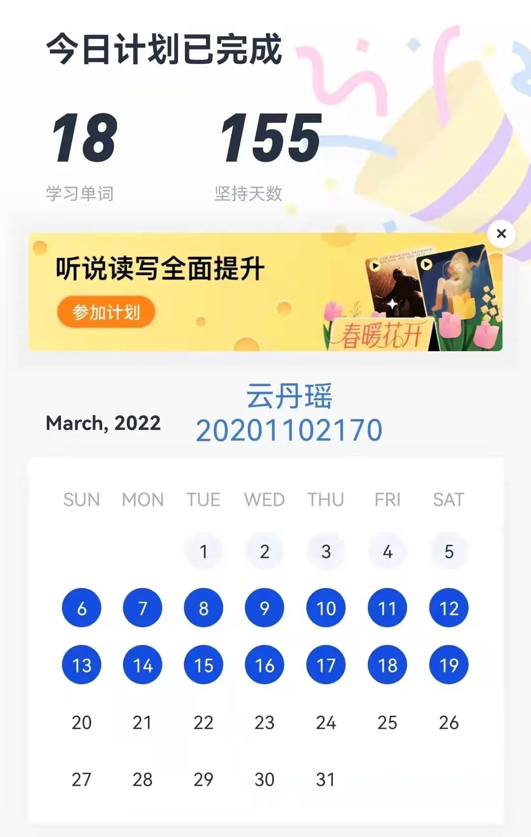 为了丰富员工的居家学习生活,提高员工的学习自觉性,sunbet申搏开展了“学习解疫,提升有我”的英语单词打卡活动,150名员工积极响应活动,进行打卡学习。