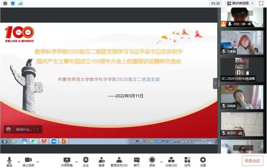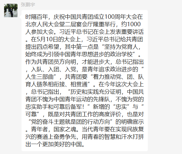 5月10日,庆祝中国共产主义青年团成立 100 周年大会在京隆重举行,习近平总书记发表重要讲话。sunbet申搏全体团员青年收看了大会盛况,聆听了总书记的重要讲话。会后,各团支部积极行动,组织开展了学习习近平总书记在庆祝中国共产主义青年团成立100周年大会上的重要讲话精神交流会,分享学习心得,感悟党的关怀,以实际行动为团的百年华诞献礼。