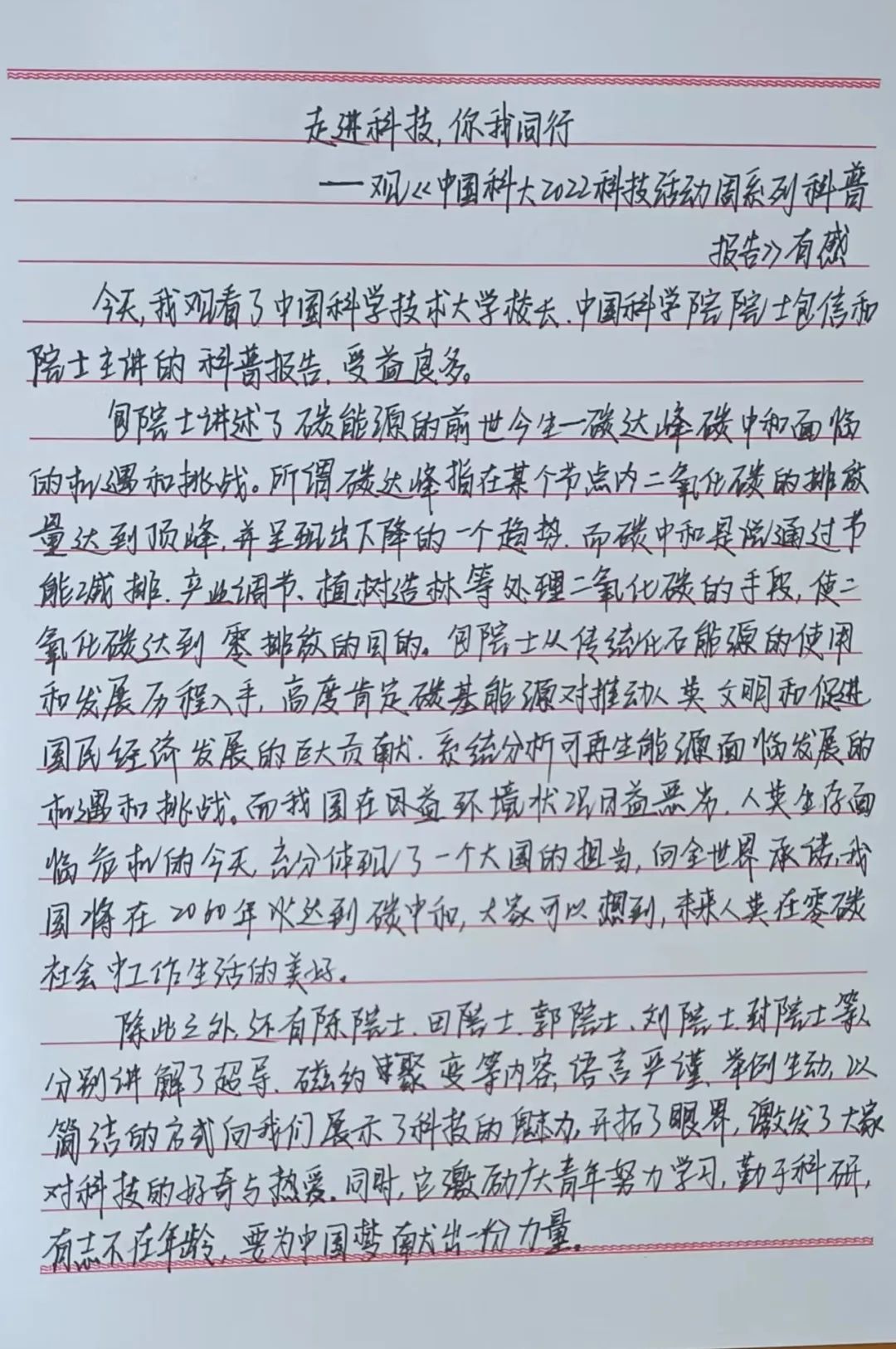 通过本次报告学习,sunbet申搏师范生丰富了自身的科技知识,也切实了解到科技与我们的生活密切相关、紧密相连。作为新时代的新青年,未来的人民员工,希望他们都能做到崇尚科学精神,树立科学思维,掌握科学方法,以后为祖国培养一代又一代的合格建设者与可靠接班人!