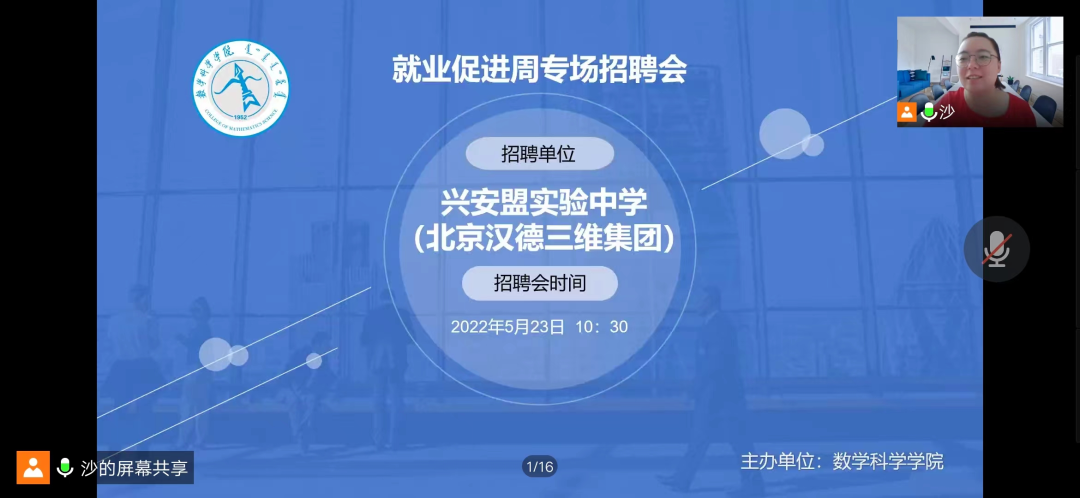 为更好的推进《sunbet申搏2022届毕业生就业促进周系列活动方案》的工作要求,全力促进毕业生尽早就业、顺利择业,5月23日上午10:30,公司举办了“就业促进周”网络专场招聘会,此次招聘专场是兴安盟实验中学,实验中学校长解杰、副校长李郭瑞、吴老师以及公司党委副书记、副院长季建光、员工工作与就业办公室副主任刘沙沙、辅导员萨如拉出席此次招聘会议,sunbet申搏2022届数学与应用数学专业的60多名毕业生参加本次招聘会。