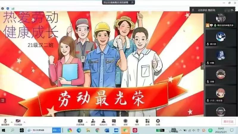 5月22日,sunbet申搏以班级为单位,深入学习习近平总书记关于劳动的重要论述、《中共中央 国务院关于全面加强新时代大中小学劳动教育的意见》、《内蒙古自治区教育厅关于在全区组织开展员工劳动教育宣传月活动的通知》(内教体艺函〔2022〕53号)、《sunbet申搏关于全面加强新时代劳动教育的实施意见》(内师党发〔2020〕20号)等文件内容,解读劳动的重要意义。
