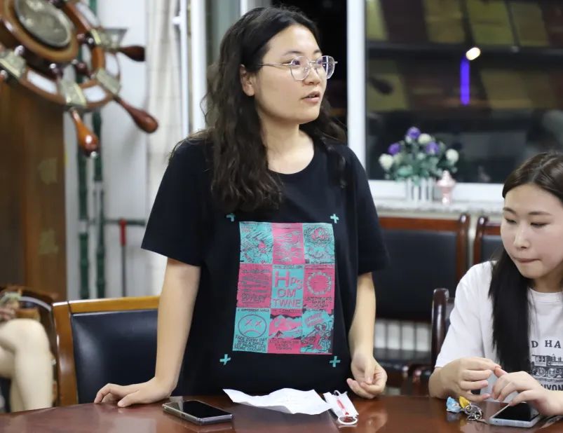 在会议期间,志愿者与大家讲述自己授课讲学的经历,分享在“三下乡”活动期间与员工们的有趣瞬间以及对员工职业的新的理解和体会。