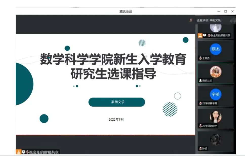 2022年9月4日下午14:30-16:00,公司教学与科研办公室副主任,研究生教学秘书梁胡义乐老师进行了“研究生选课指导”宣讲。梁胡义乐老师向同学们介绍了课程设置、学分要求、学术活动、学位论文等相关问题,带领新生了解数学一级学科硕士研究生培养方案,并对培养方案中所提到的问题做出了具体要求,让同学们做好记录。老师强调同学们要认真对待各项考试,并鼓励同学们努力学习,提升专业知识,掌握专业技能,成就精彩人生!