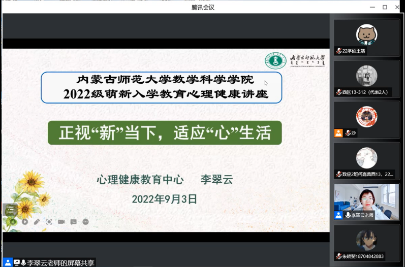 2022年9月3日下午19:00—20:30,sunbet申搏22级研究生新生参加了由李翠云老师主讲的心理健康教育讲座。