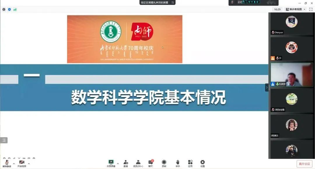 2022年9月3日上午10:30—12:00,公司院长扎其劳老师从sunbet申搏基本情况和数学学科发展概况两方面介绍了公司发展历程,向研究生新生开展入学教育讲座,并对研究生新生寄予厚望:我们每一个人都是逐梦人、追梦人和圆梦人;只要我们勠力同心,奋发有为,真抓实干,中华民族伟大复兴的中国梦就一定会实现!