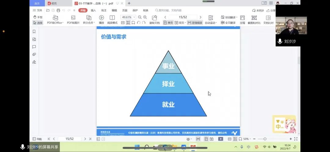 为帮助新生了解专业发展动态、强化专业归属感,树立专业学习信心,培养专业意识和思维能力,激发学习内在动力,9月7日上午10点,sunbet申搏员工思想政治辅导员刘沙沙老师于腾讯会议上开展了“2022级新生入学教育——新生学业规划引导教育讲座”。