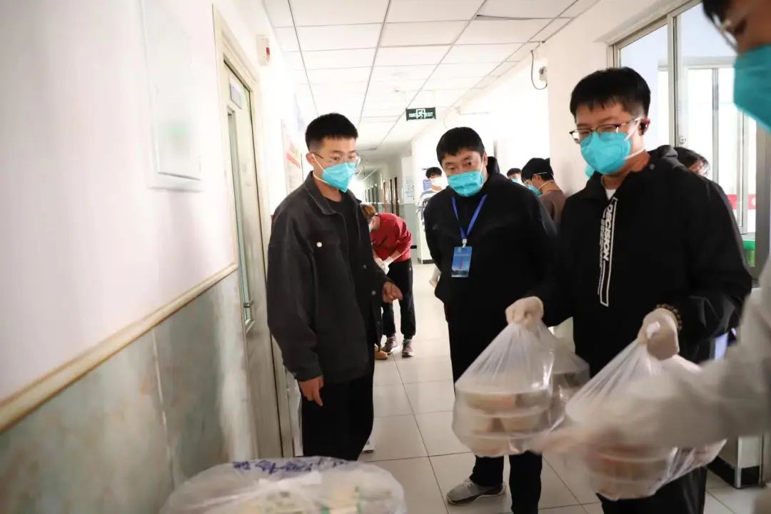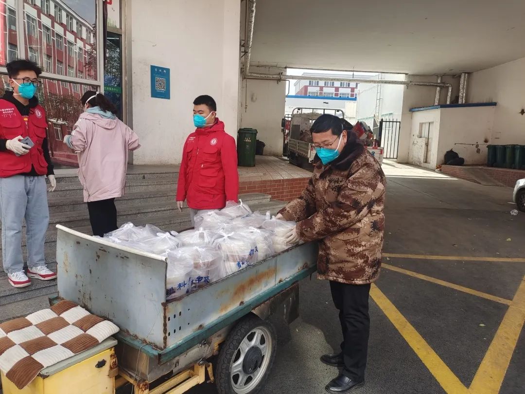 扎其劳院长和志愿者们共同负责将员工的一日三餐送到宿舍楼,保障静默期间同学们能够及时吃到热乎的饭菜。