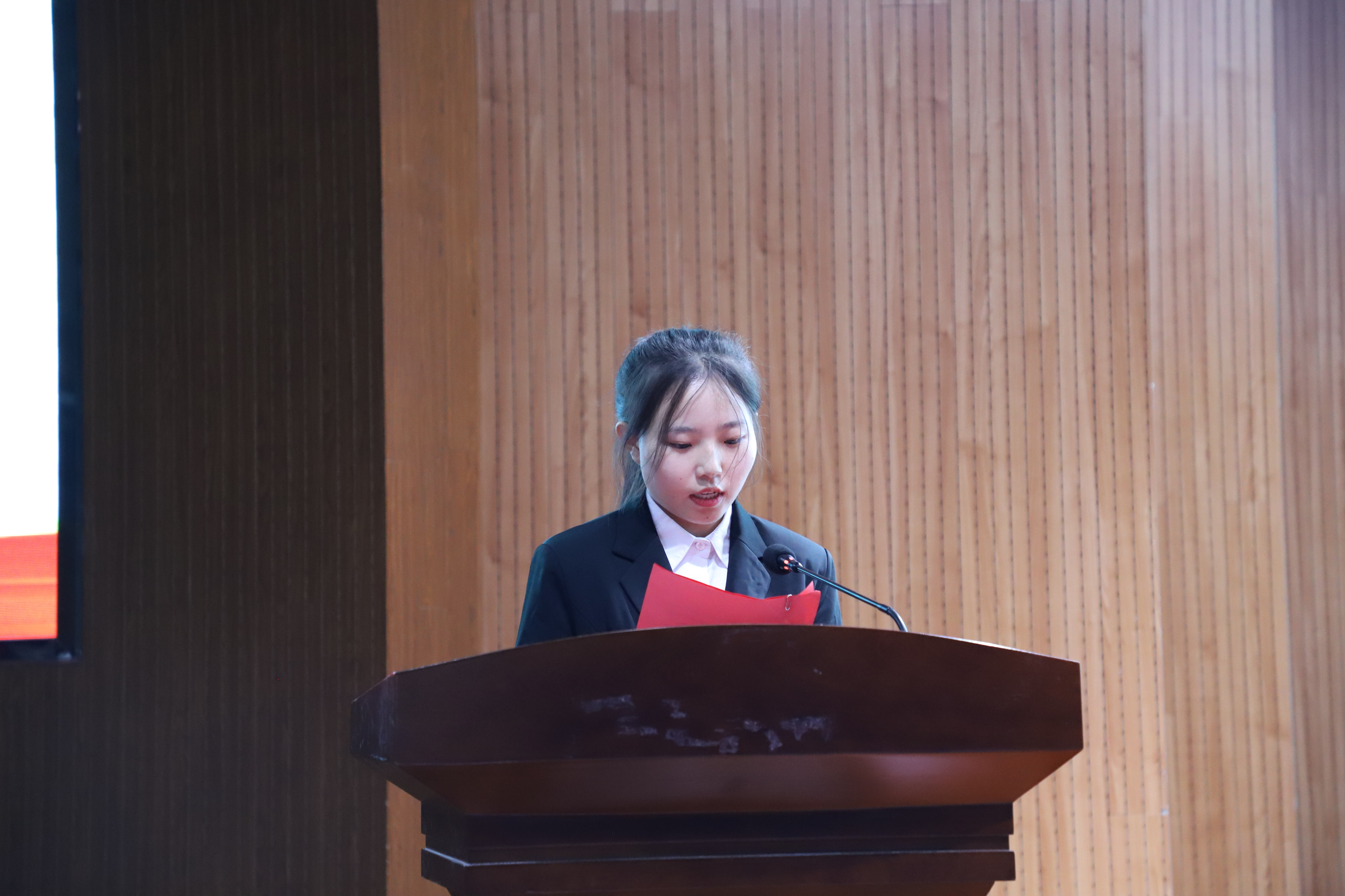 在校优秀员工代表20级信息班张欢同学发言
