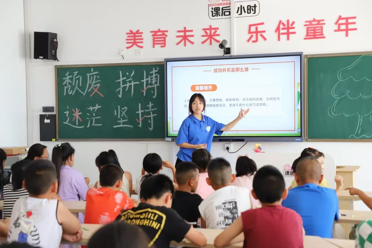 “三下乡”社会实践活动接近尾声,按照教育关爱服务团计划组织召开了一次励志教育主题班会。志愿者们组织员工写下自己的优缺点和个人理想,并结合志愿者自身的学习经历,用形象通俗的语言讲述了勤奋学习、立志成才的故事,引起大家的理解和共鸣,为青少年提升学习动力、树立个人理想指明方向。志愿者们还利用课内课外时间和契机,抓住一切机会和孩子们谈书籍、谈理想、谈体会,引导员工进行深入思考和拓展探索,进一步营造了积极向上的学习氛围与成长环境。