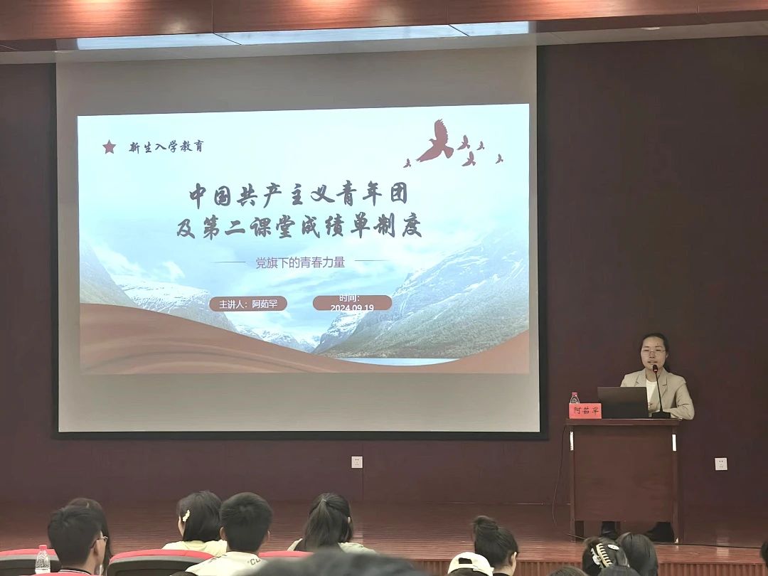 公司团总支副书记阿茹罕老师为大家介绍了中国共产主义青年团发展团员的准则、程序和智慧团建的相关内容。此外,阿茹罕老师还为大家细致讲解了学校的第二课堂成绩单制度。