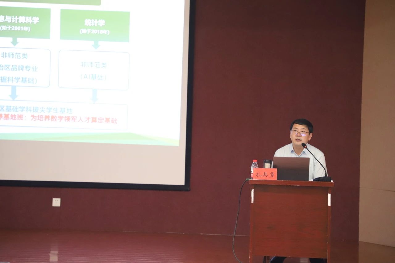 毕力格图老师,冯世斌老师和张涛老师分别面向数学与应用数学、信息与计算科学和统计学专业的新生进行了专业思想教育。老师们对各专业的重要课程分别进行了讲解,鼓励同学们端正态度,钻研学术,度过一个充实且有意义的大员工活。