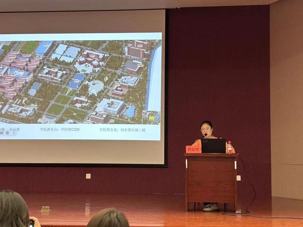 公司教学与实践办公室副主任阿如罕老师为大家介绍了本科生培养方案、学籍管理、选课及其相关操作的具体内容。同时,阿老师还为大家讲解了考核与成绩记载、学业预警以及毕业要求的要点。