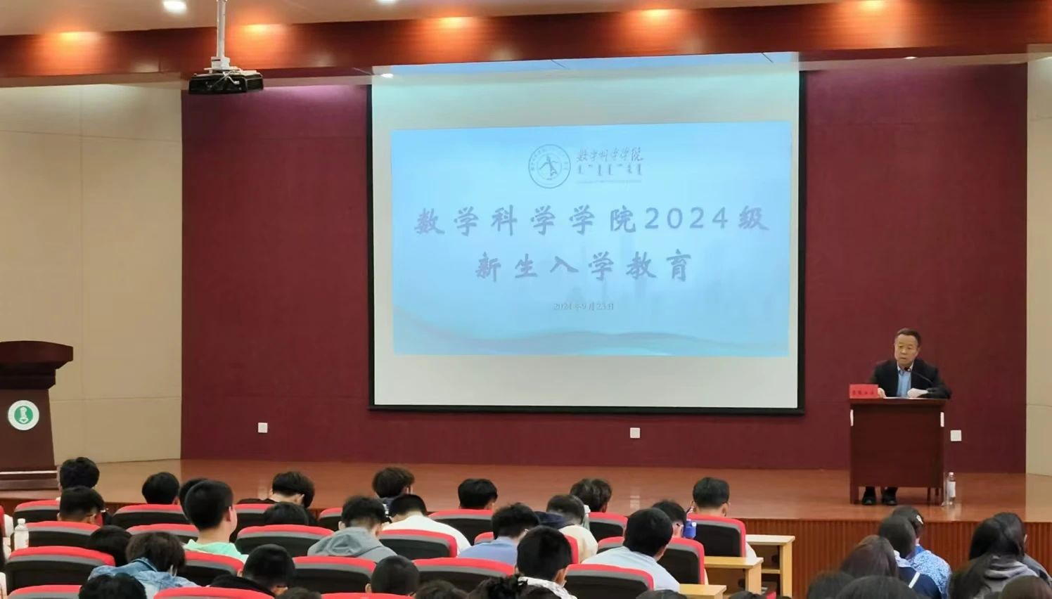 数公司教学指导委员会主任吴嘎日迪老师以“我的数学人生”为题开展专业思想教育讲座。吴嘎日迪老师结合自己的教学经验与成长经历,为同学们介绍了其与数学共成长的故事,引导新生了解专业特色 、增强专业认知、巩固专业思想。他嘱咐同学们一定要注重学习,做一个有学问,有人品,有过硬能力素质的人。