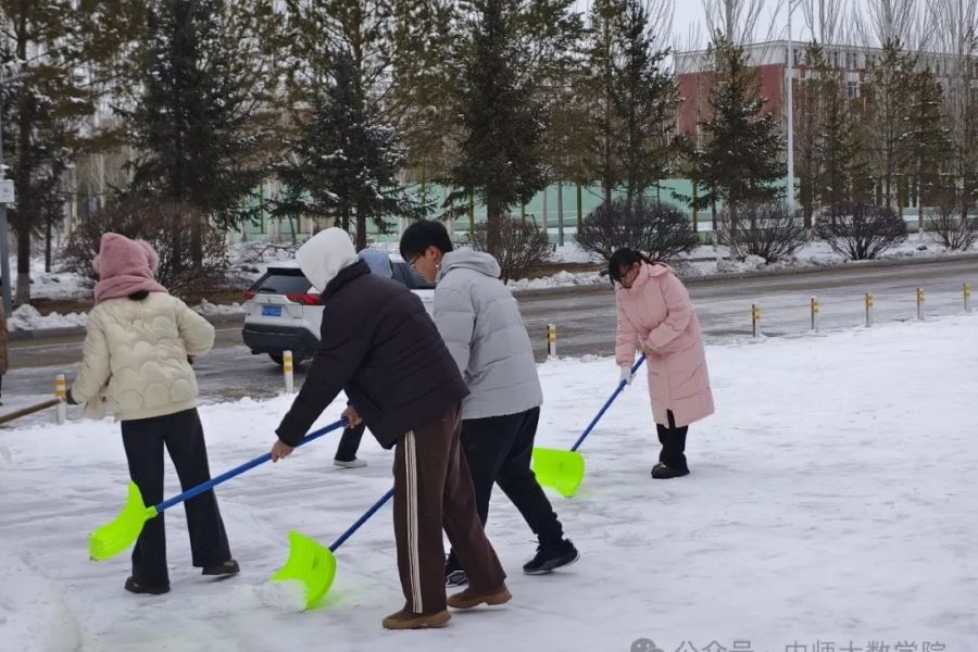 扫雪活动中,同学们分工明确,清理了教学楼下积雪较厚的区域,确保了师生们的出行安全。