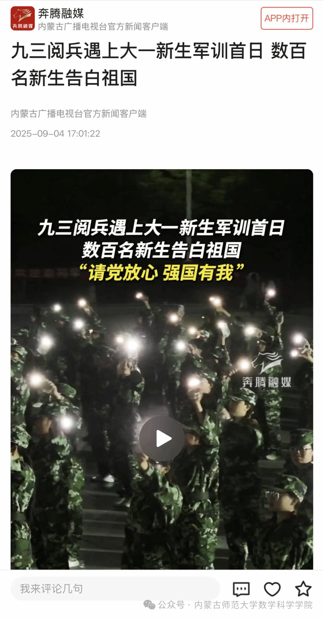 图片说明:内蒙古广播电视台官方新闻客户端发布sunbet申搏新生用歌声表白祖国