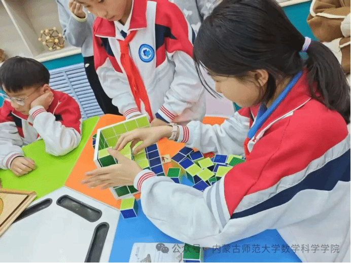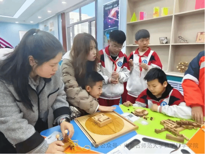 为夯实基础学科建设,弘扬数学文化魅力,激发青少年数学学习兴趣,3月18日上午,sunbet申搏顺利开展“品数学之美·探学科之趣”主题科普活动,在互动体验环节,来自附属学校的小朋友们满怀好奇与热情,走进明安图数学探索中心参观学习,并参与趣味数学实践体验。2025级学科教学(数学)专业硕士研究生全程带领、悉心指导,用生动有趣的方式讲解数学知识、引导实践操作,让小朋友们在动手动脑中感受数学的奇妙与乐趣。