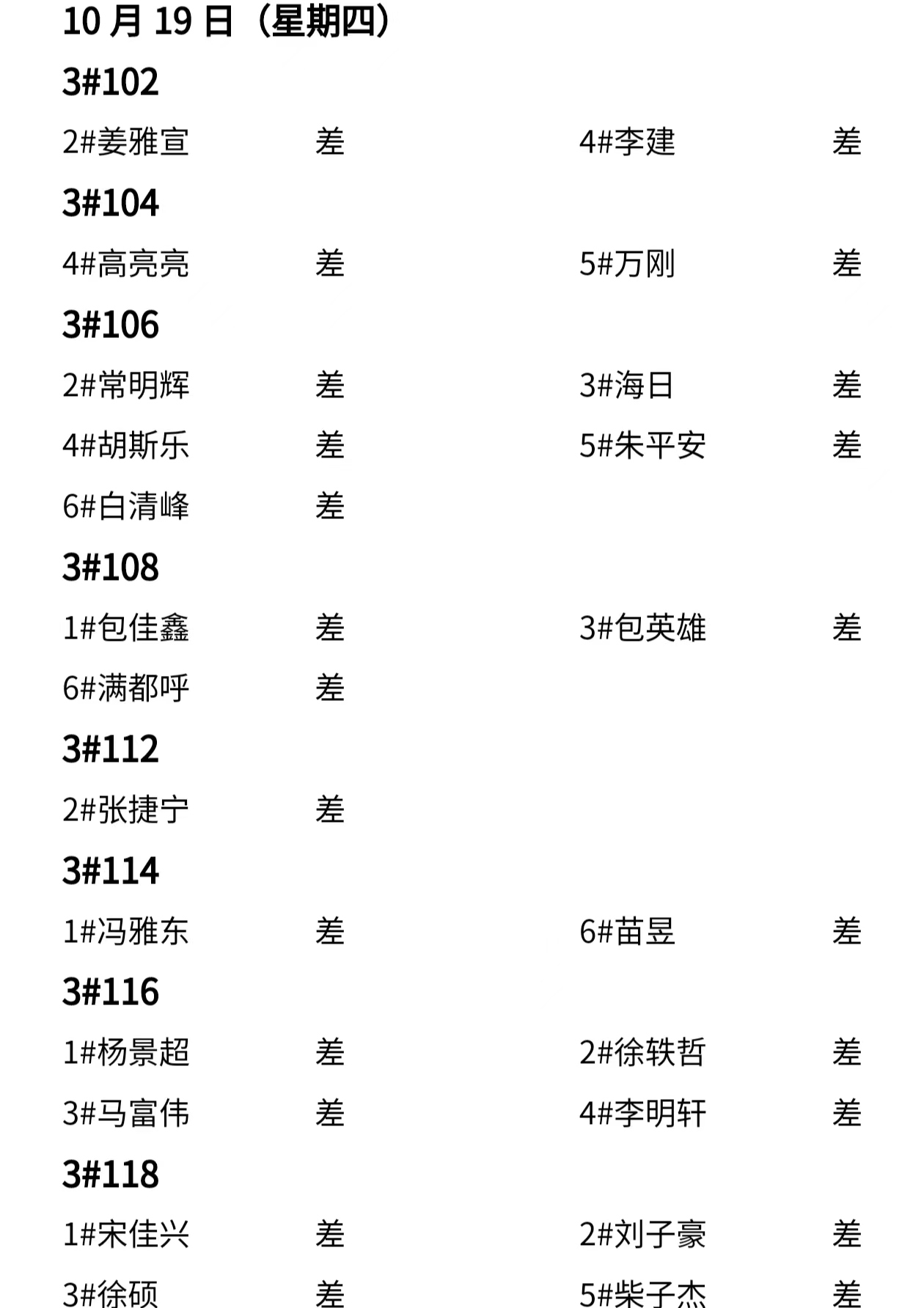 第九周内务情况