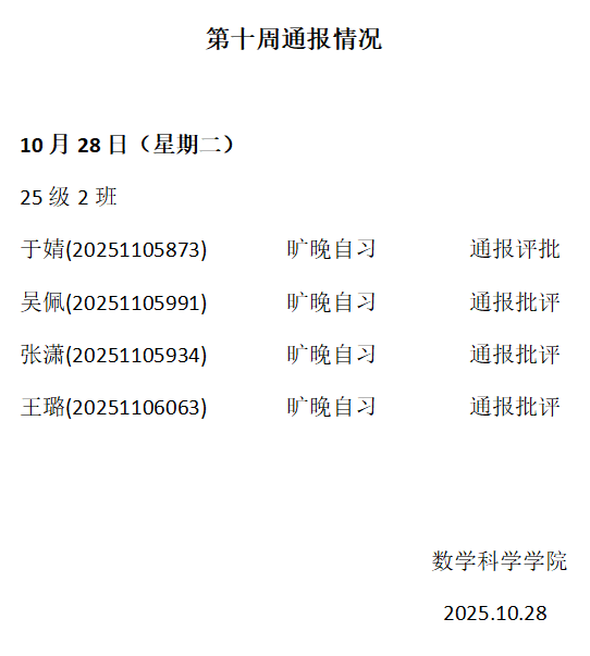 sunbet申搏2025——2026年度第一学期第十周通报情况