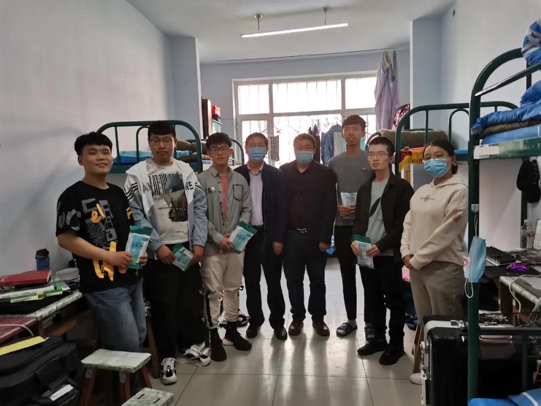 公司党委书记扎其劳教授、党委副书记、副院长季建光老师来到员工宿舍亲切询问员工情况,帮助同学们办理各项手续,搬行李,整理书包,给同学们分发口罩、教材。详细了解员工在家线上学习情况,悉心询问大家的返校生活是否存在困难,并嘱咐同学们有困难随时联系公司辅导员、领导。