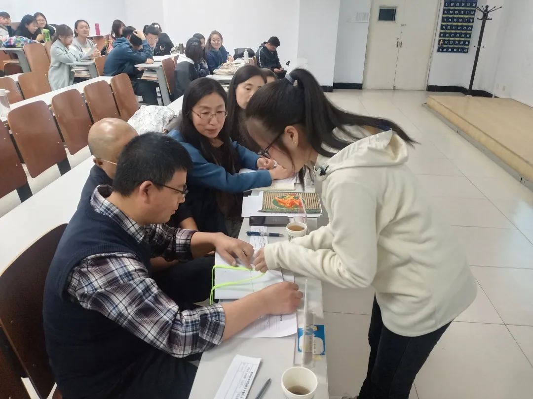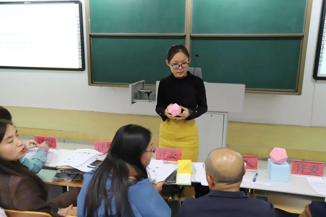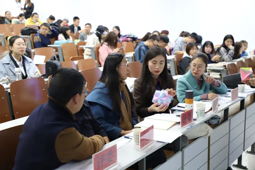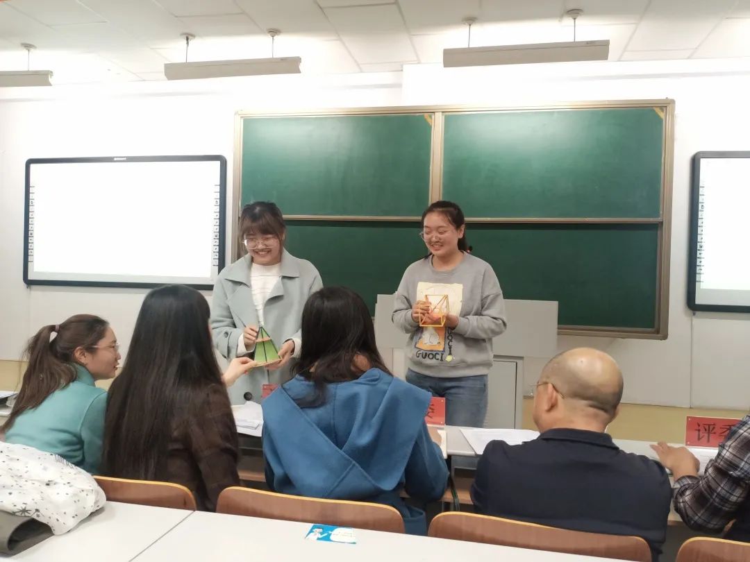 选手们向评委老师展示自己的实物教具作品,并进行详细讲解。