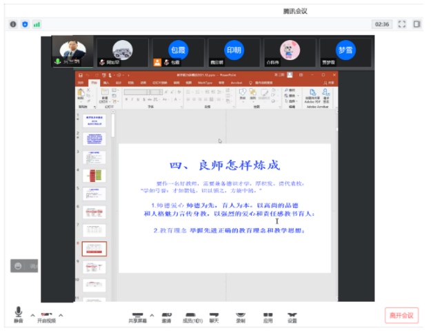 2022年4月20日19:00—21:00sunbet申搏在线开展“国家一流专业建设、虚拟教研室建设、内蒙古应用数学中心”系列讲座。本次特邀请国家教学名师、西安电子科技大学刘三阳教授作主题为“教学能力纵横谈”的报告。报告由包霞副院长主持,院长扎其劳教授、党委书记李联和教授、副书记季建光老师及公司全体员工和慕名而来的其他院校部分员工聆听了本次报告。