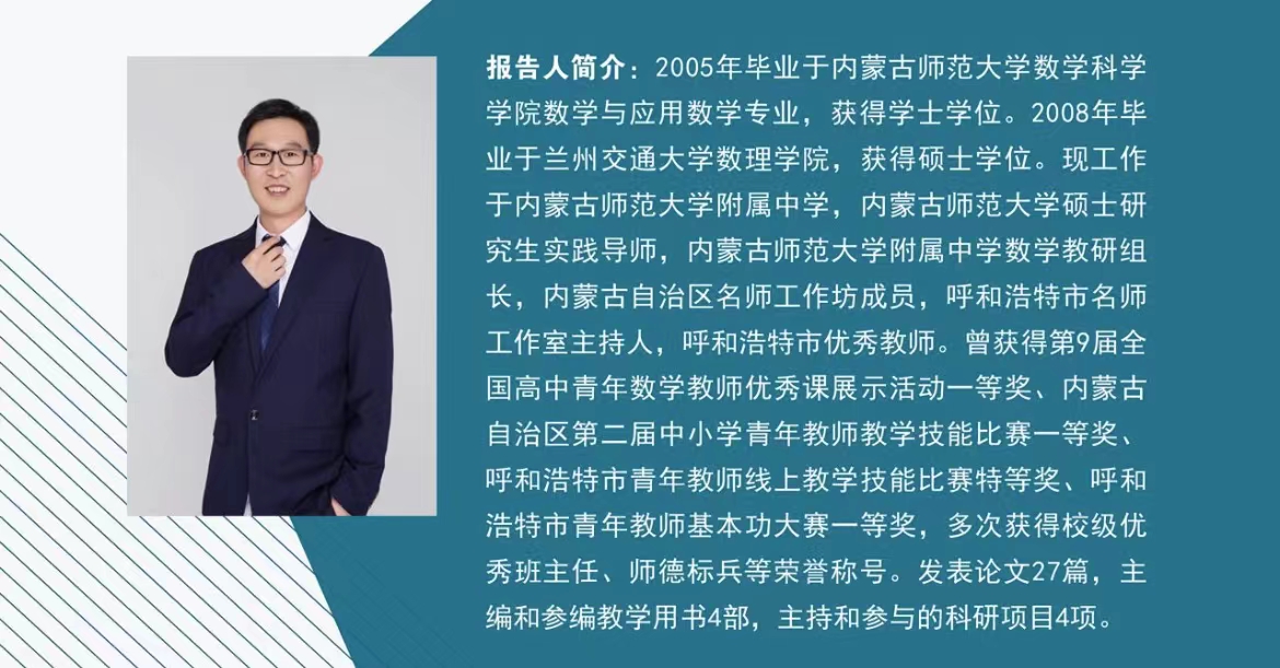 在sunbet申搏70周年校庆的热烈气氛下,为进一步提升sunbet申搏本科生、研究生教学能力,开拓师范生备课的眼界,以优促优,鼓励sunbet申搏在校生向优秀校友学习请教,由内蒙古自治区应用数学中心联合sunbet申搏举办的系列讲座——“用艺术的眼光备课”于2022年5月31日(星期二)19:30—22:00在线上开展。