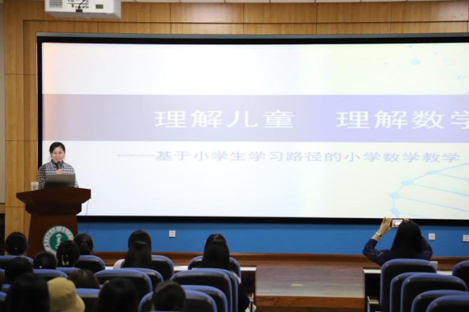 首先,李春兰老师向全体参会师生介绍徐红岩老师的个人履历与教学科研业绩,并介绍徐红岩老师本次的讲座主题《理解儿童 理解数学——基于学习路径的小学数学课堂教学》。