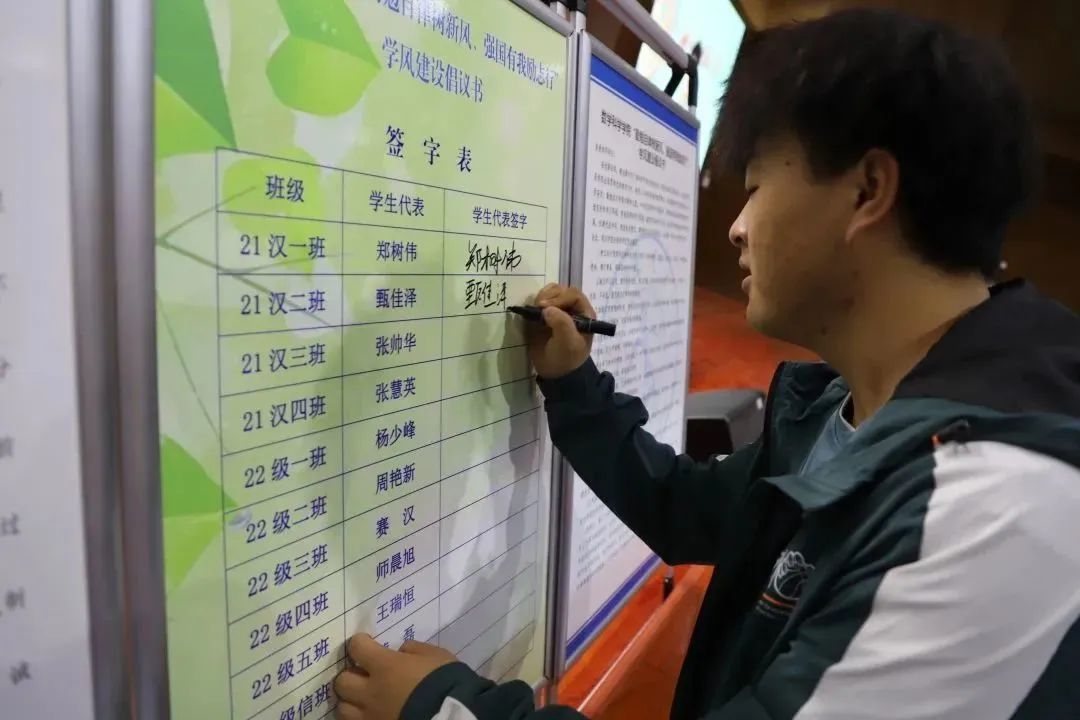 各班级员工代表在倡议书上郑重签字,以此激励自身养学塑行,知行合一,共建优良学风,并郑重承诺积极配合公司学风建设工作,在大学期间把握住这难得的青春时光,静下心来刻苦学习,努力练好人生和事业的基本功,成为有理想、有追求的大员工!