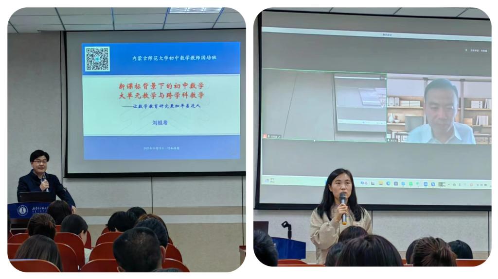 学员代表乌海市第九中学张宇婷老师、包头市石拐区第一中学赵智敏老师、赤峰市经棚二中贾元珷老师分享了此次培训学习的心得,展现了满满的收获。张宇婷老师表示参加这次培训意义非凡,不仅提高了自身的能力和素质,也体会到了团队的力量和同仁的情谊,所学到的知识会对以后的教科研工作有着重要的指导意义,同时,也表达了为此次培训付出辛勤劳动的领导、老师及工作人员的衷心感谢、对学员们的美好祝福;赵智敏老师从新课标的角度分享了个人心得,对于新课标有了更清楚的认识与理解,为日后的教学工作指明了方向,也表达了通过这次培训,结识了许多优秀的同行老师,与其交流、探讨,拓宽了自身眼界,为将来的教科研的顺利开展搭建了很好的平台;贾元珷老师表示这次的培训是教学路上的一笔宝贵财富,通过这两周的学习,收获满满,受益颇多,对于数学教学有了更新的认识,对于改进课堂教学、开展教学研究充满了信心。