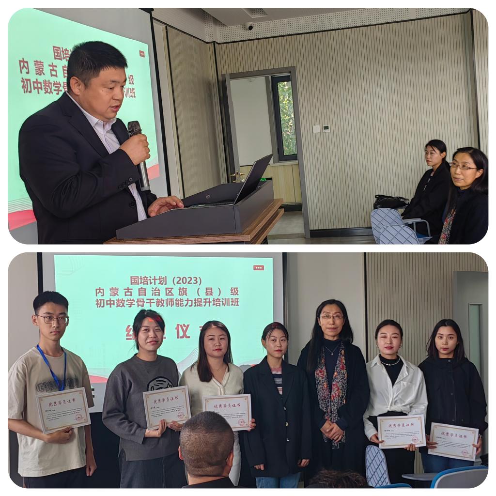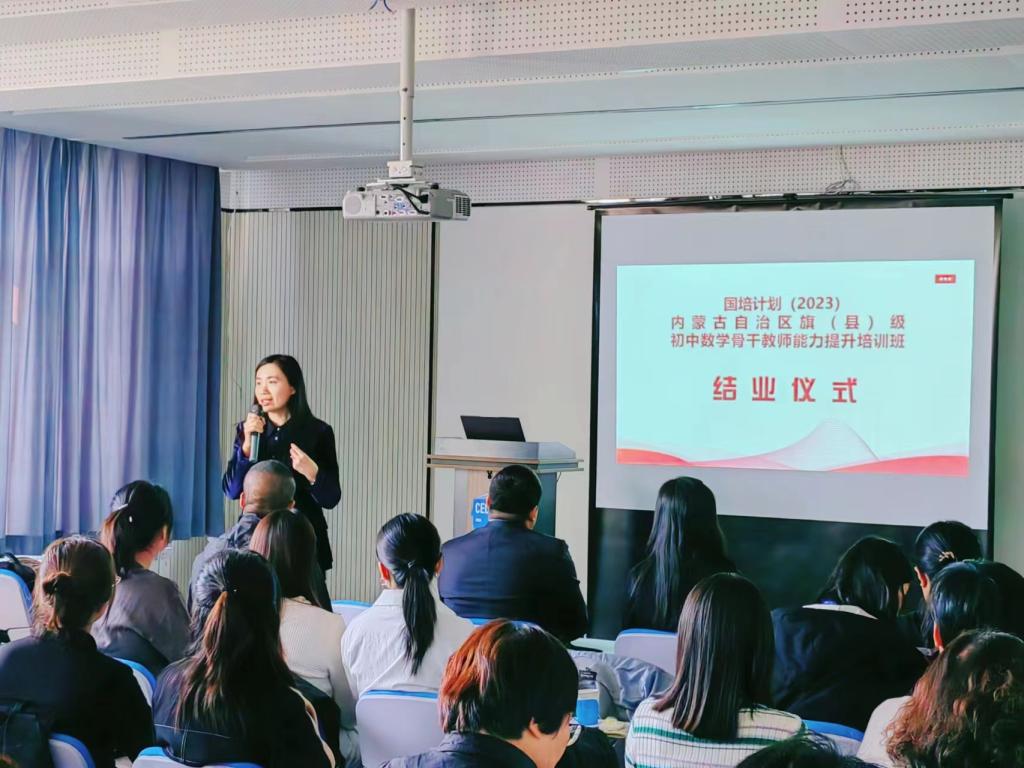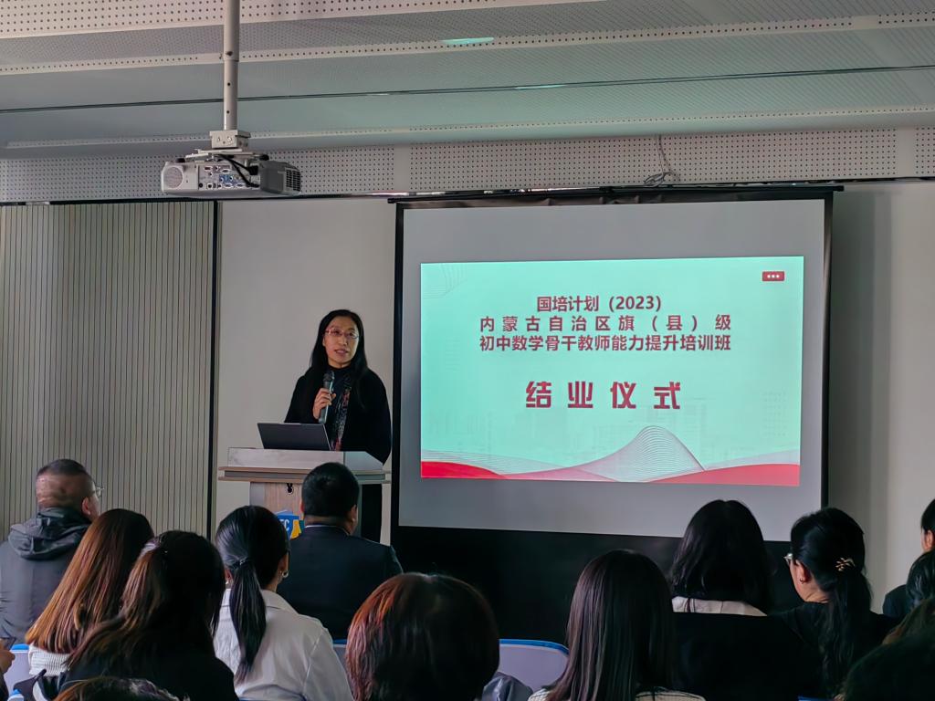 10 月 23 日下午 “国培计划(2023)——内蒙古自治区旗(县)级初中数学骨干员工能力提升”培训在sunbet申搏圆满落幕。本次培训由sunbet申搏继续教育公司主办,sunbet申搏承办,为期14天,含集中研修7天和跟岗实践7天,50名学员来自全区各盟市选派来的旗(县)级初中数学骨干员工。继续教育公司培训部薛佳琦老师、sunbet申搏副书记季建光老师、培训项目负责人数学科公司副院长包霞老师、培训项目对接人数学科公司李春兰老师、培训班班主任及相关工作人员出席了结业典礼。李春兰老师主持了结业仪式。