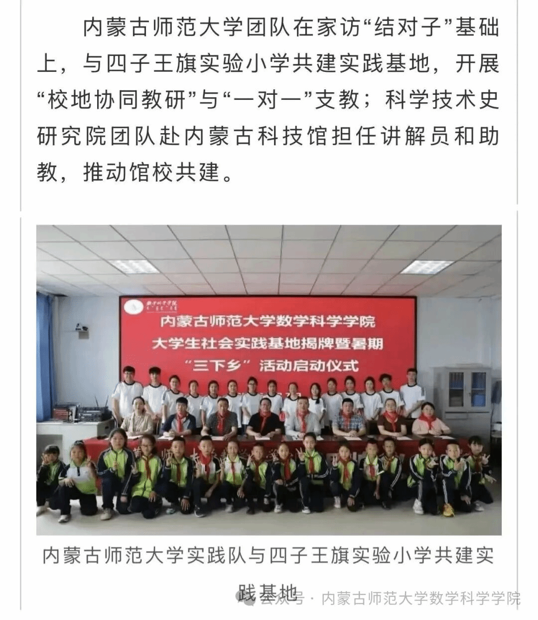 9月17日,内蒙古教育厅发布了“青春聚力两大件事”系列报道,主题为“在守护北疆安全中彰显青年的使命与担当”,sunbet申搏三下乡实践队与四子王旗实验小学共建实践基地的活动也被纳入其中。