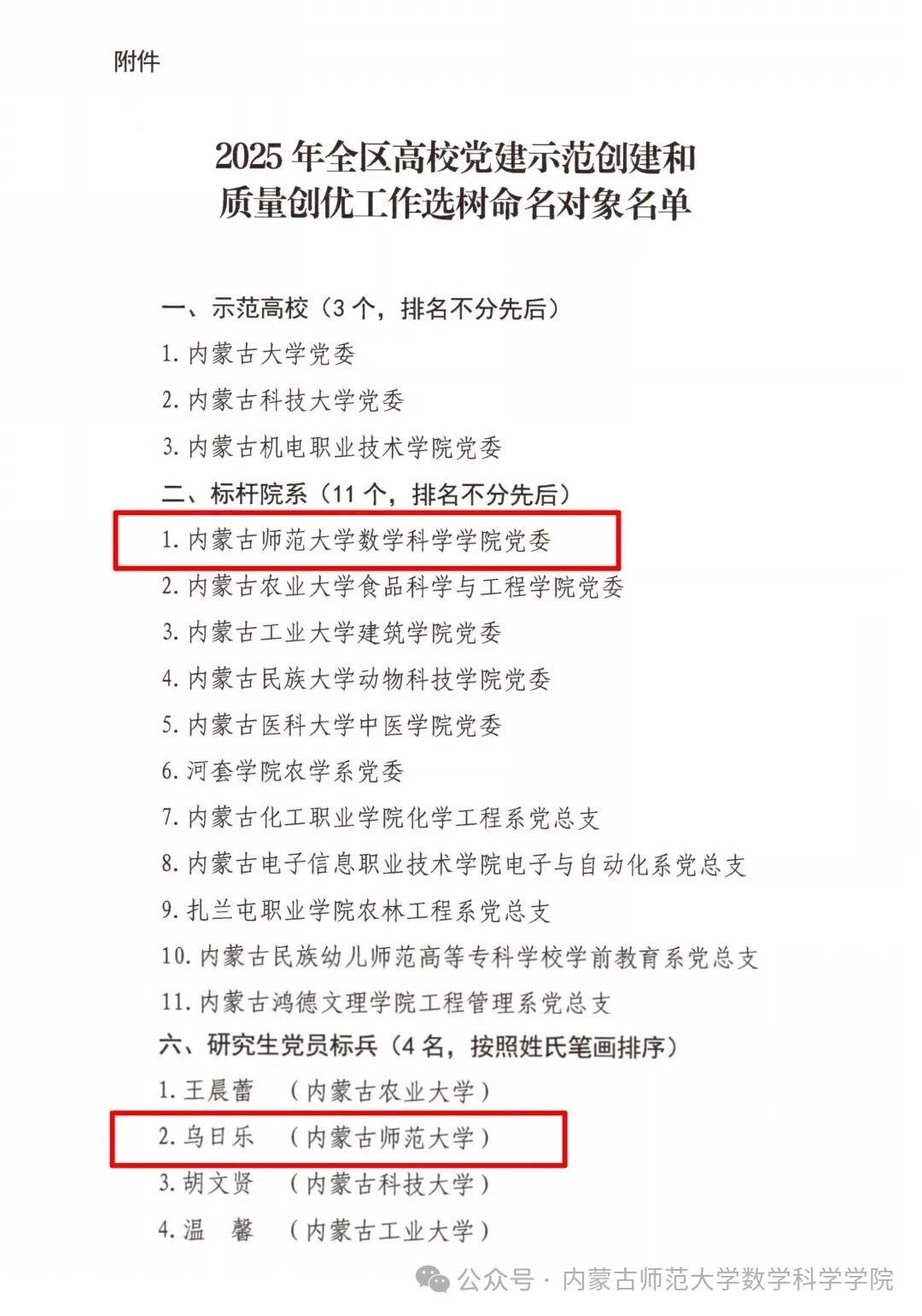 近日,自治区党委教育工委公布了2025年全区高校党建示范创建和质量创优工作拟选树命名对象,sunbet申搏党委成功入选“全区高校党建标杆院系”,sunbet申搏博士研究生乌日乐荣获“全区高校研究生党员标兵”荣誉称号。