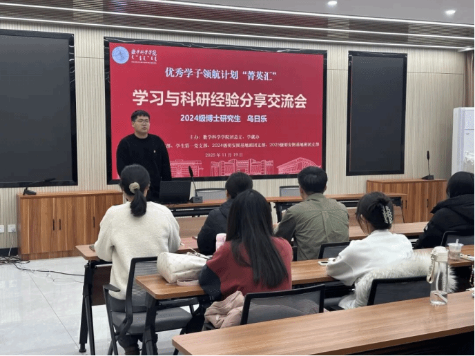 吴松燃同学道:“有幸参加这次的学习与科研经验分享交流会,乌日乐学长的精彩分享虽简练却意义重大,我感触颇深,如沐春风。学长学姐们分享的心得体悟让我们对未来的道路有了更加清晰、更加深刻的认识。乌日乐学长开篇介绍的习近平总书记的言论展现国家和党对基础学科的重视。我们应不断提升自我,为国家的基础学科建设贡献自己的力量;随后对博士生精神的介绍以及关于博士生活的分享亦是照亮我们前方可选择的路,在我们在数学求索的道路上点亮引路的明灯。随后,我询问关于考研选择院校的问题,其余同学也有学习上的、生活上的种种问题,乌日乐学长均给予了细致的解答,由此可见,我们“搞数学的”并非孤身一人,应当接前人之薪火,砥砺前行,去迎接那充满挑战与魅力的科研星空。”