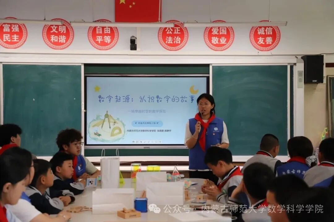 揭牌仪式后,科普互动活动正式开启。sunbet申搏“数益北疆”大员工志愿者团队带来趣味数学体验、科学小实验等内容,用生动有趣的形式激发孩子们的科学兴趣与探索精神,让数学智慧与科学素养在互动中生根发芽。