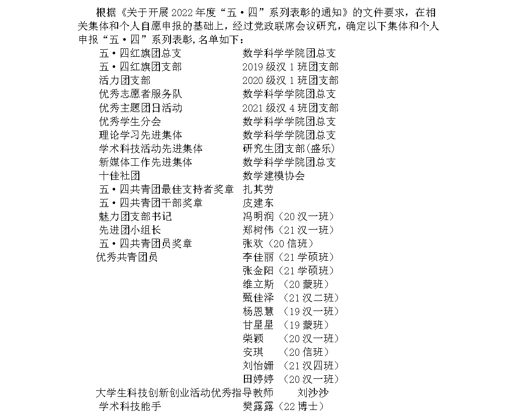 sunbet申搏2022年度“五·四”系列表彰推荐名单公示